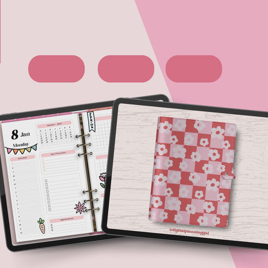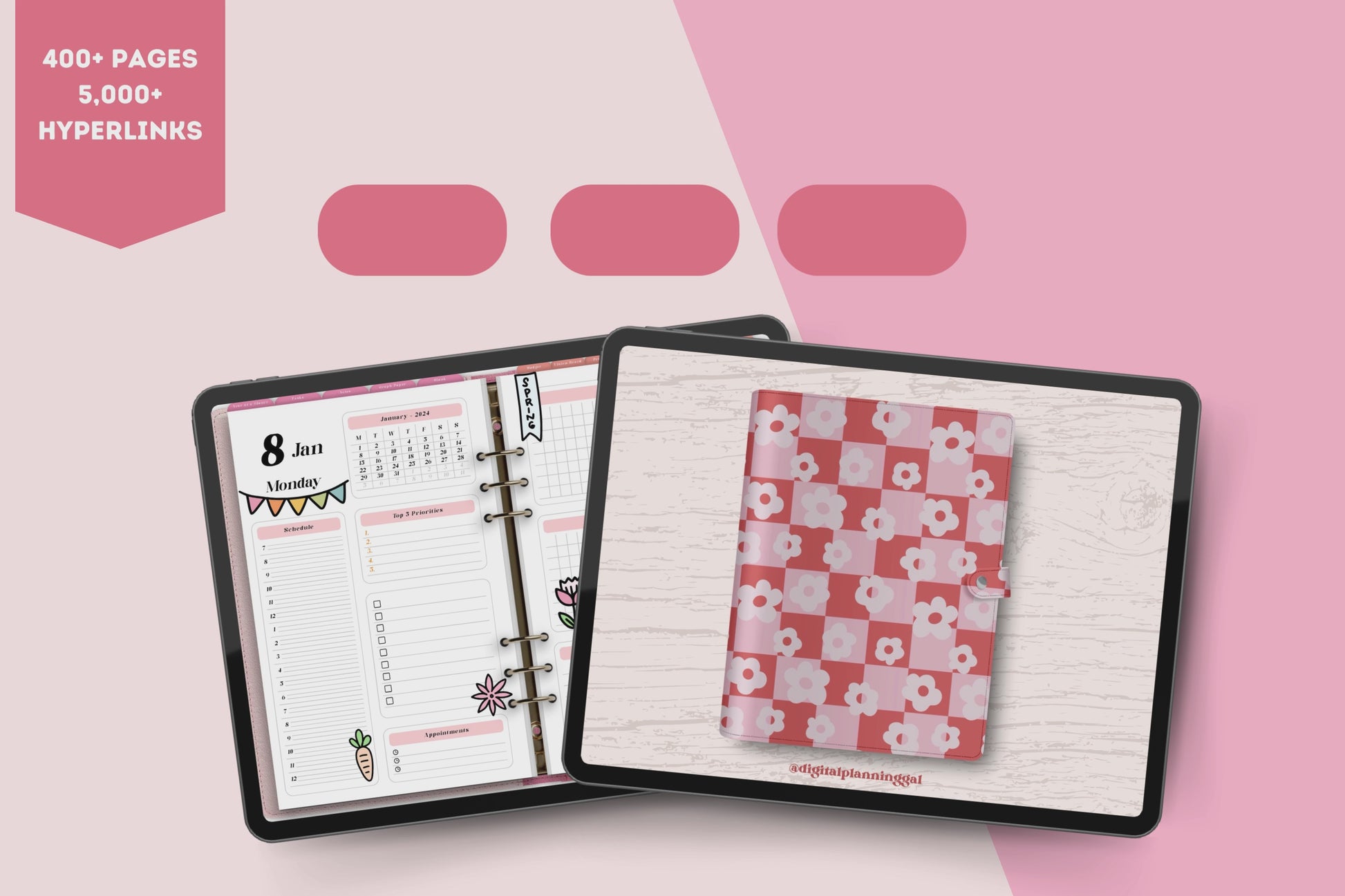Looking for a fun new planner that doesn't bulk up your bag? A digital planner is the way to go! Use our Retro Pink 2024 Horizontal Dated Hyperlinked Digital Planner with your iPad or tablet on the app Goodnotes! This item is a digital download. No item will be shipped to you.