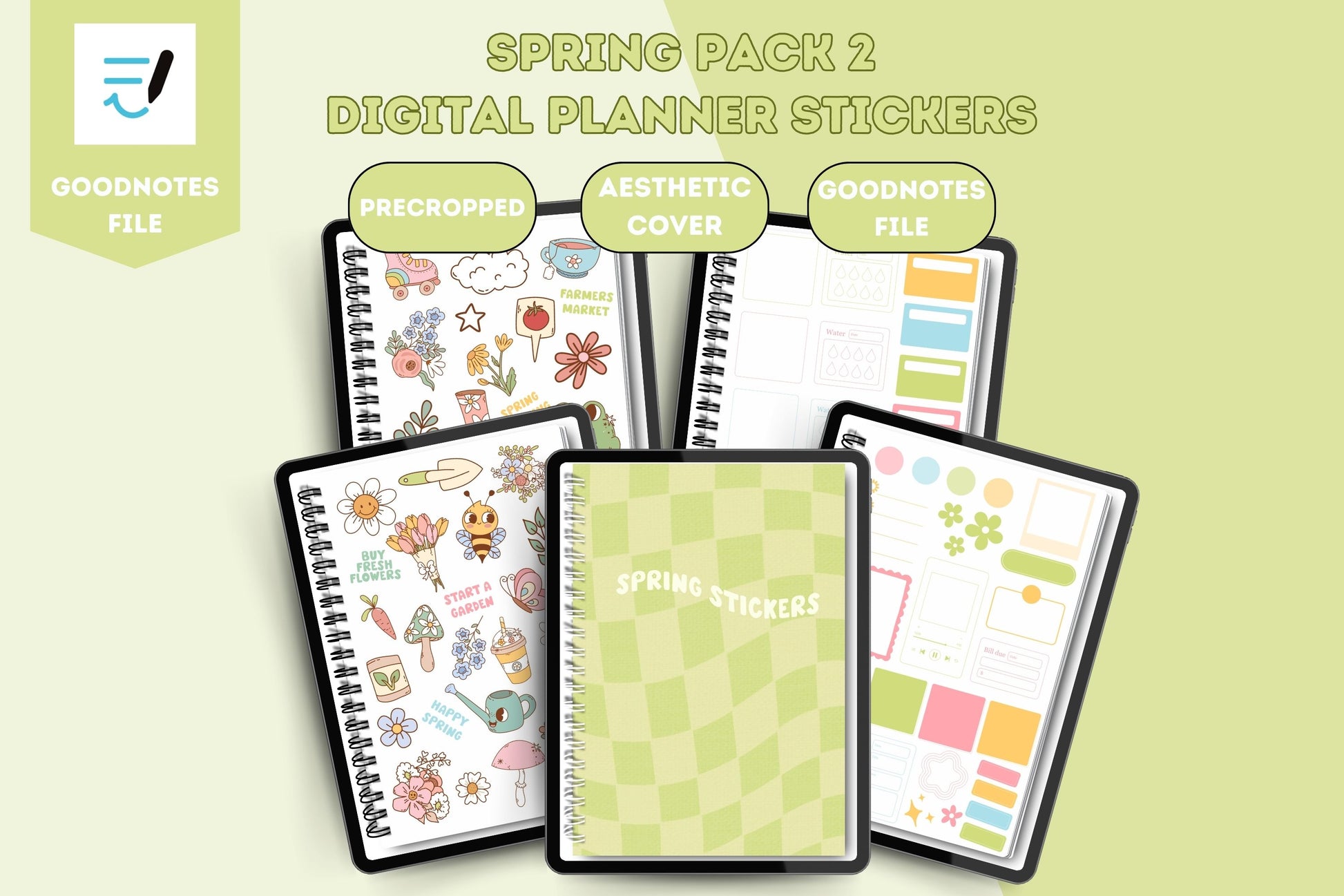 Spring Pack 2 Digital Planner Stickers, Goodnotes Digital Planner Stickers, Spring Digital Stickers