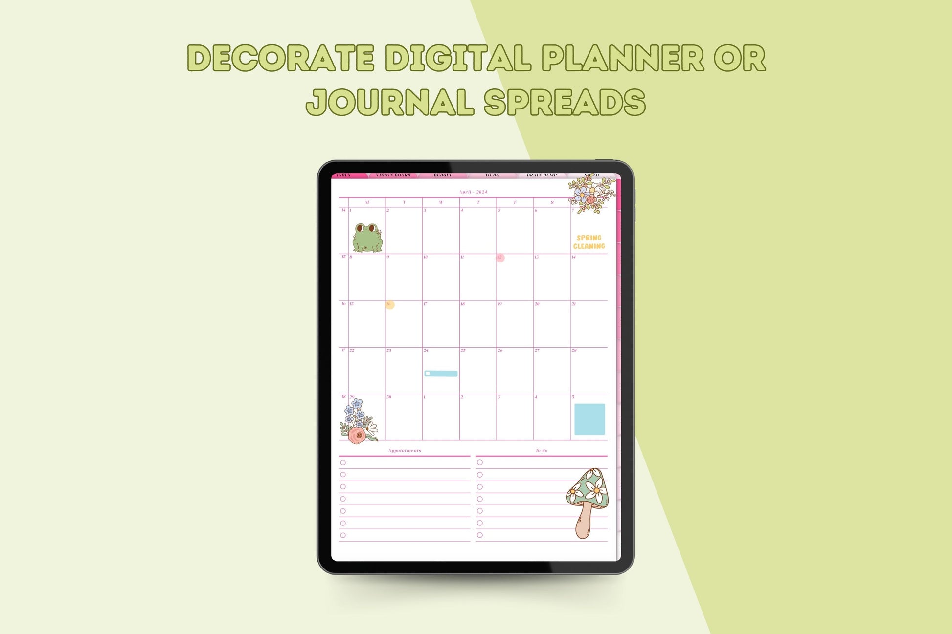 Spice up your digital planner or journal spreads with these fun spring digital planner stickers! They come as a pre cropped Goodnotes file to easily copy and paste into your spreads!