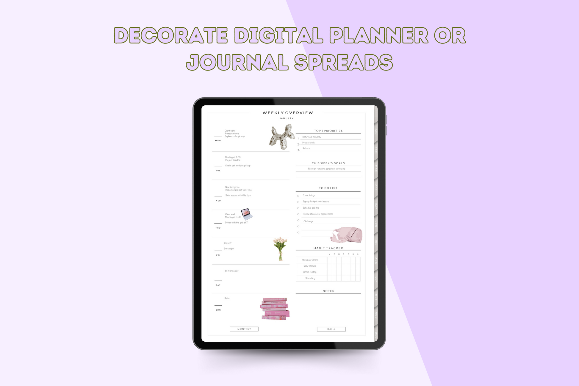Spice up your digital planner or journal spreads with these fun hand illustrated doodle digital planner stickers! They come as a pre cropped Goodnotes file to easily copy and paste into your spreads!