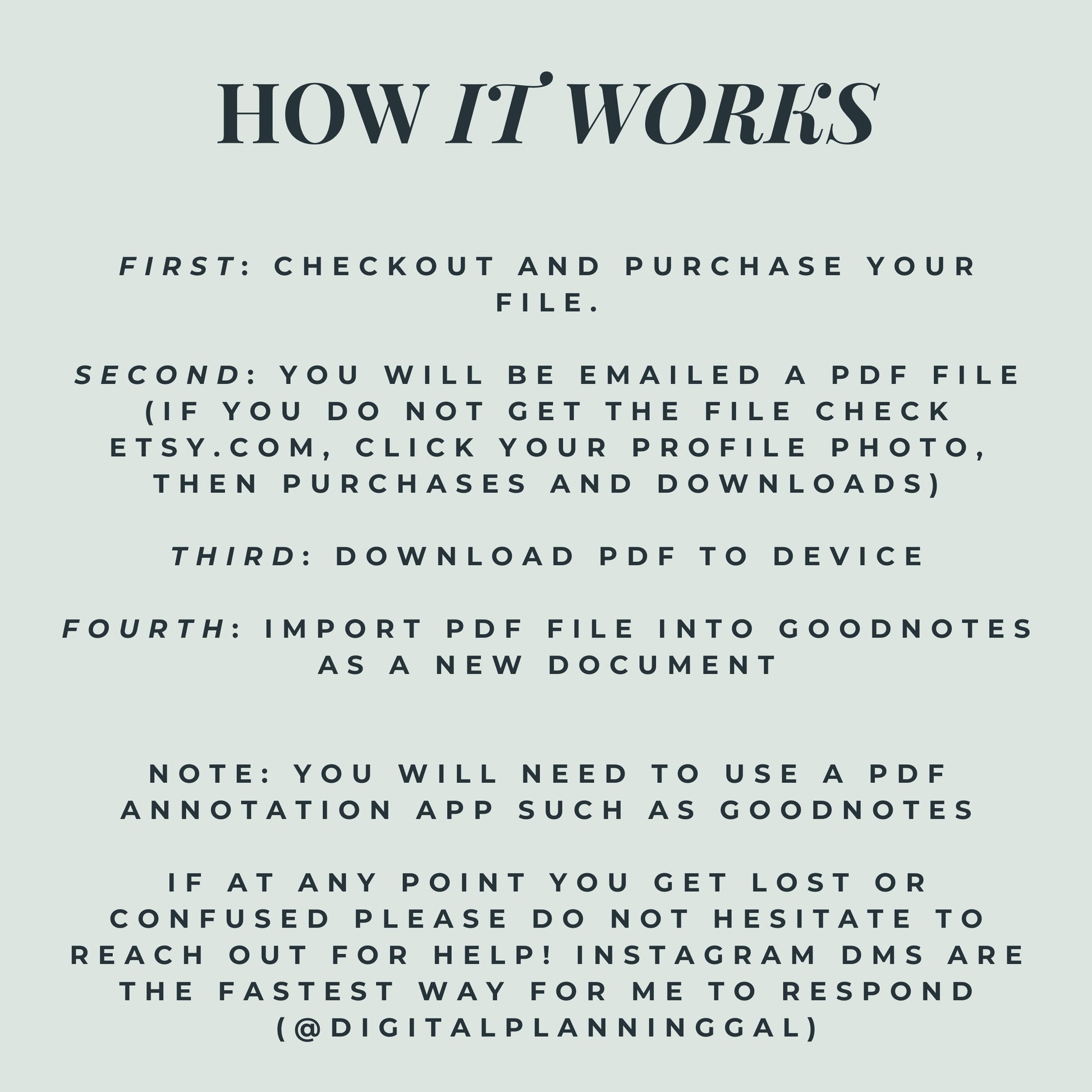 PDF file. The file can be downloaded using a web browser. Upon download, you will open the downloaded file and open up in Goodnotes where you'll import as a new document.