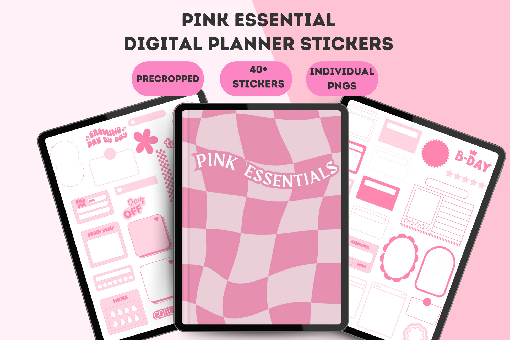 Pink Essential Digital Planner Stickers, Goodnotes Digital Planner Stickers, Pink Digital Stickers
