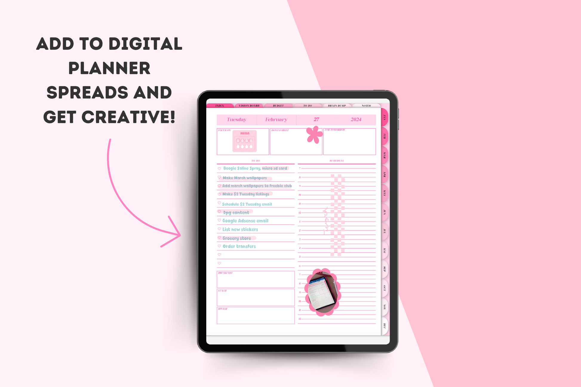 Spice up your digital planner or journal spreads with these fun pink essential digital planner stickers! They come as a pre cropped Goodnotes file to easily copy and paste into your spreads!