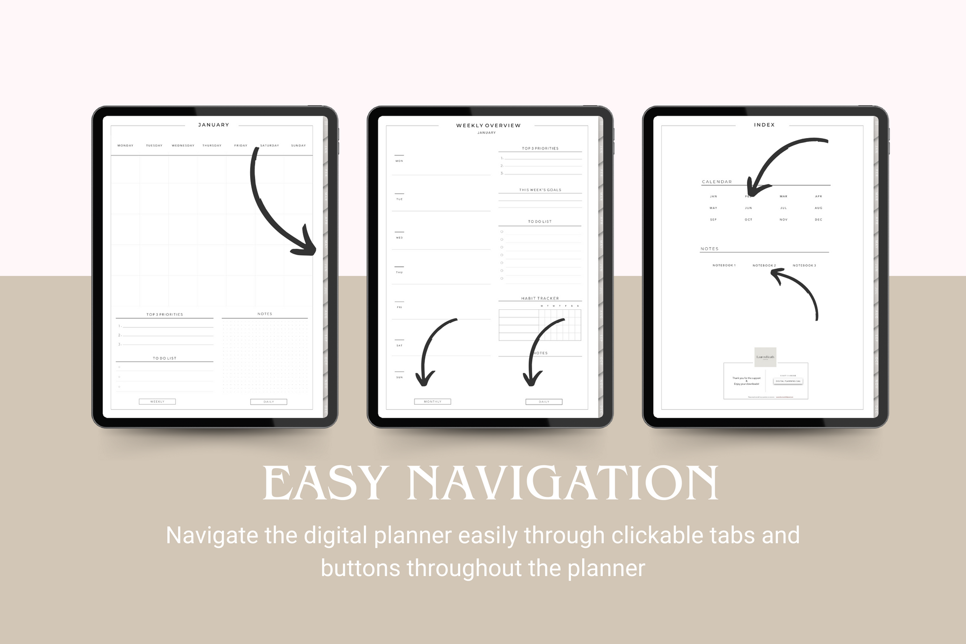 Looking for a fun new planner that doesn’t bulk up your bag? A digital planner is the way to go! Use our UNdated Minimal Lifestyle Digital Planner with your iPad or tablet on the app Goodnotes! This item is a digital download. No item will be shipped to you.
